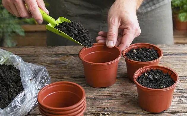 - Contenants : Utilisez de petits pots ou des plateaux de germination, de préférence avec des trous de drainage.