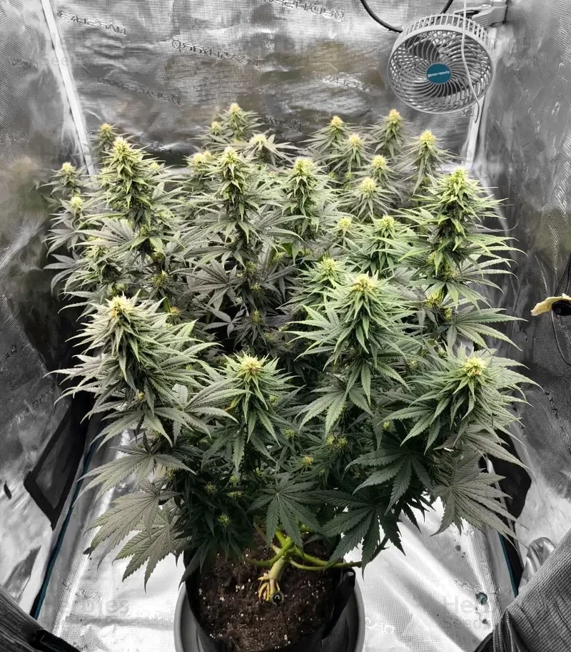 Critical Mass Fast stays fairly compact indoors at 70-90cm (2.3-3ft), which makes it easy to manage in smaller rooms or efficient production setups. Outdoors, it can stretch to 180-220cm (5.9-7.2ft), especially when started early and given enough sun. The plant develops sturdy growth with medium internodal spacing, though heavy buds may still push branches harder than expected by the final stage.