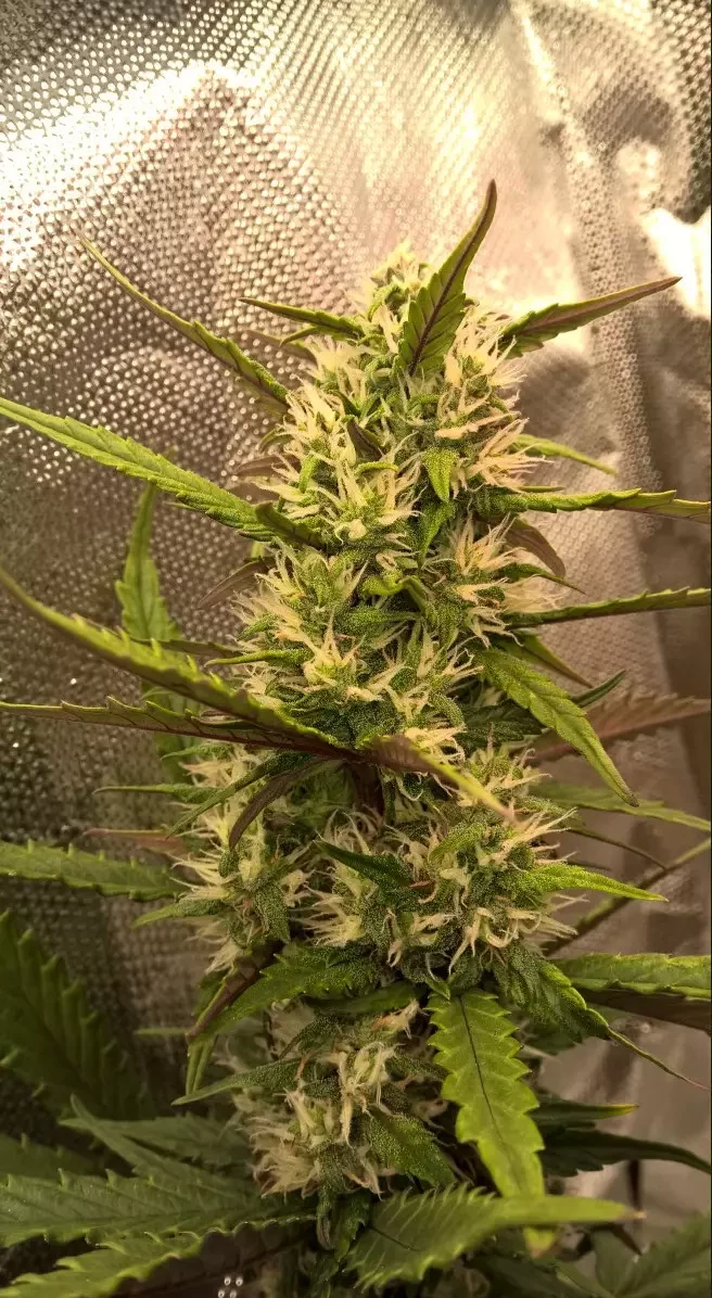 Update day 32. The strain itself is nice. First time I bought just one seed and it was awesome. Because of that I grabbed a 3-pack… aaand now I get why people complain. Out of three only one turned out really good and that one’s the green pheno. The purple one looked cool but started acting weird around day 18. Twisted leaves, spots that turned into holes, then it dropped its big fans. Meanwhile the other seed in the same pot with the same care was totally fine.