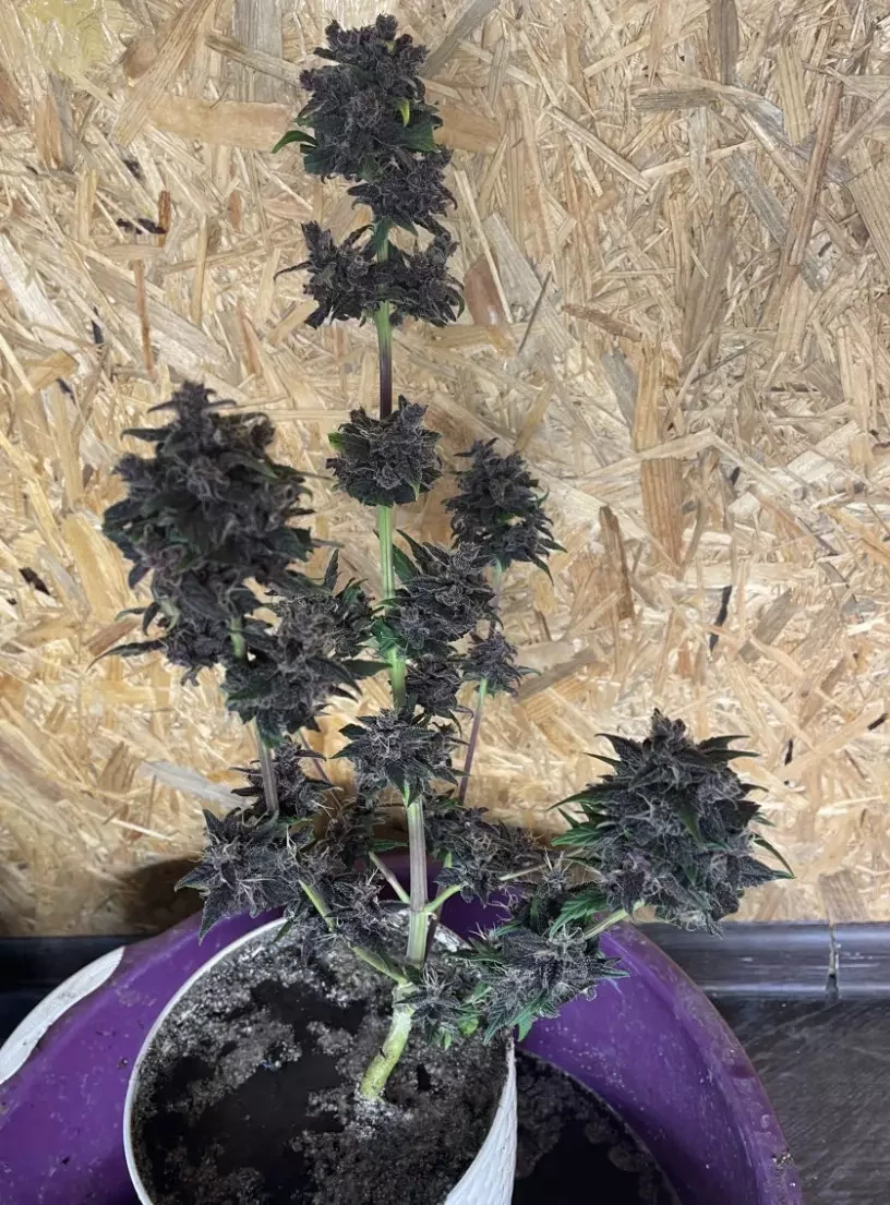 Day 68 from seed,just did a flush,going give her darkness soon. My first purple plant ever!
