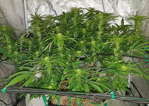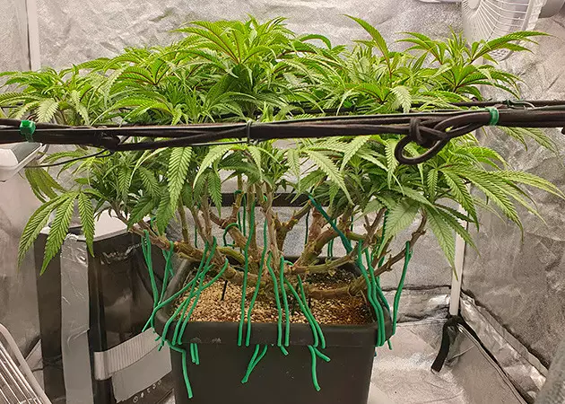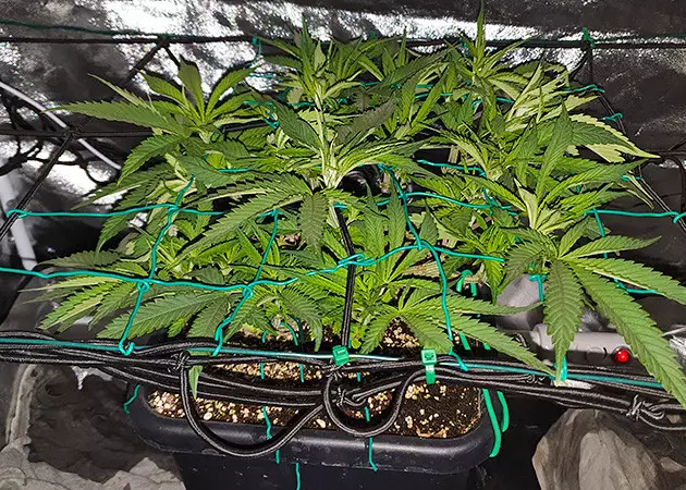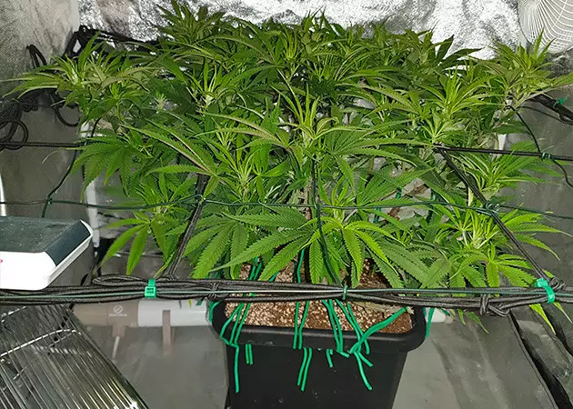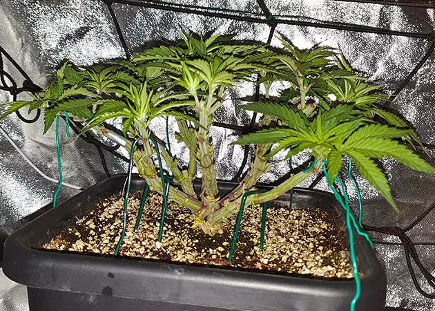 I knew I had all the time in the world to give my plant the shape and size I wanted because this was a photoperiod strain and I could keep her in veg indefinitely. As a result, my Mimosa Evo grow was quite long — 12 weeks of veg and 7 weeks in flower. This is her whole training schedule: